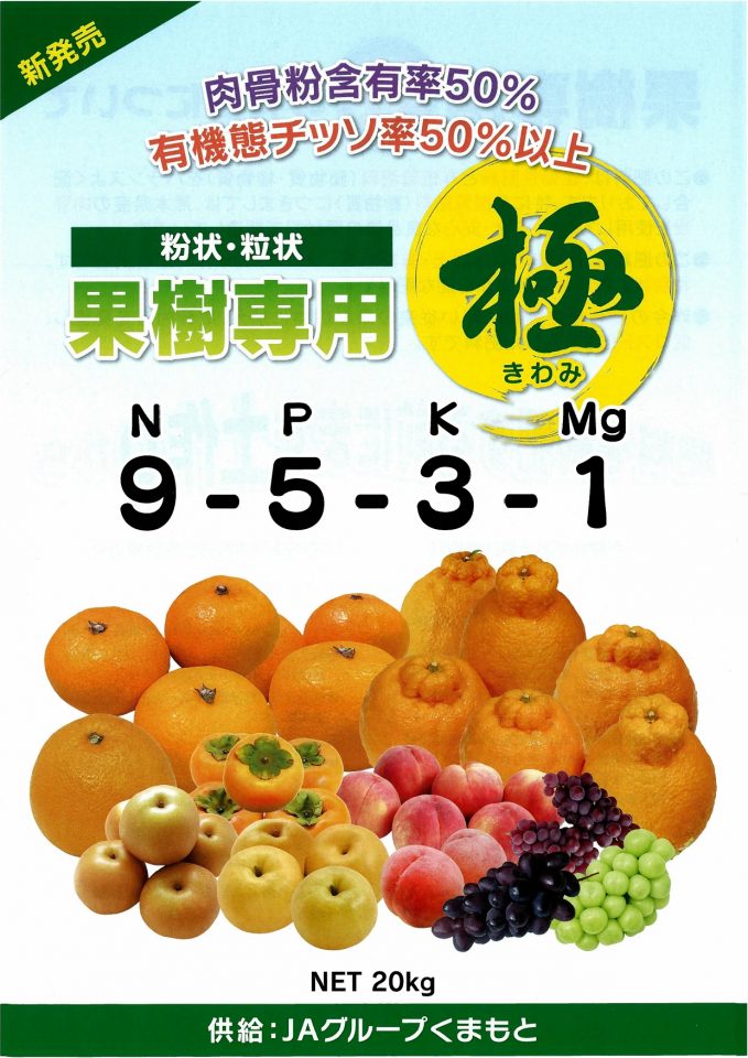 このたび、JA熊本経済連では「果樹専用 極(きわみ)」と「新有機入り米(元肥)」、「新有機入り米(追肥)」を新発売いたしました。