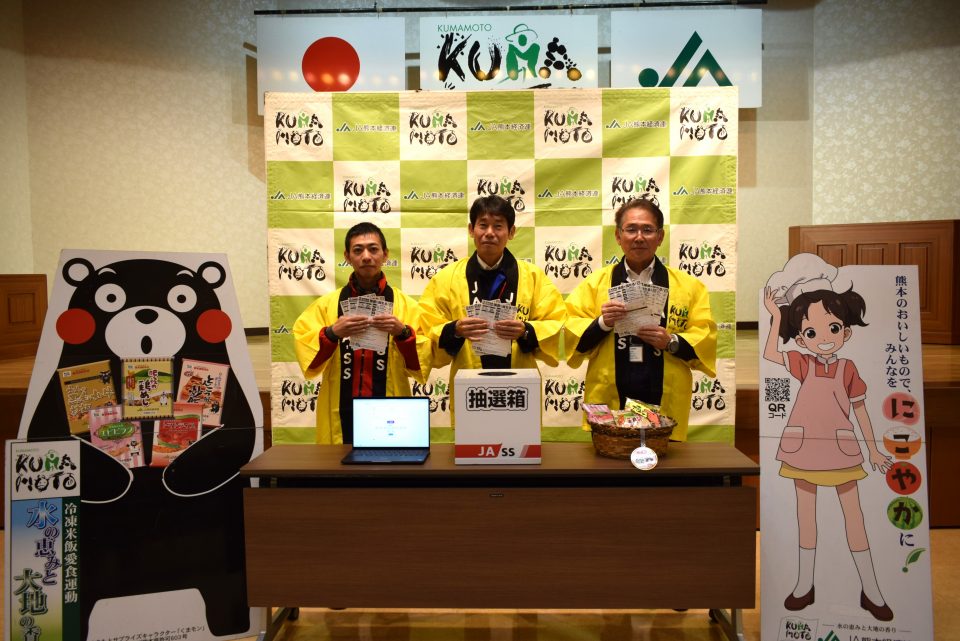 熊本県JA―SS本部研究会(事務局=JA熊本経済連)は1月21日に「熊本県下JA‐SS秋の大感謝祭」の当選者抽選会を開きました。抽選会では、JTBトラベルギフトやJAタウンのギフトカード、冷凍米飯セットなど、合計556名の当選者が選ばれました。