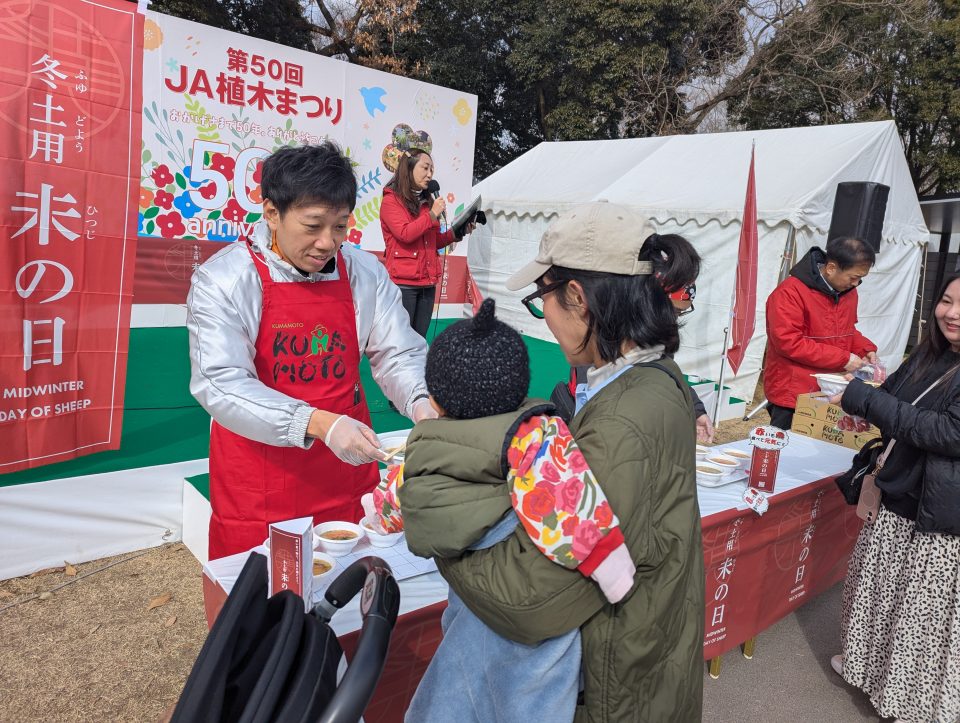 JA熊本経済連は2月1日、第50回JA植木まつりの開催を記念し、来場者への感謝を込めたふるまいイベントを実施しました。当日は、赤い食べ物を食べると縁起が良いとされている「冬土用未の日」の認知拡大と文化定着を目指すプロモーションの一環として、“赤い食べ物”を使ったトマトみそ汁とミニトマト「アンジェレ」を来場者に振る舞いました。