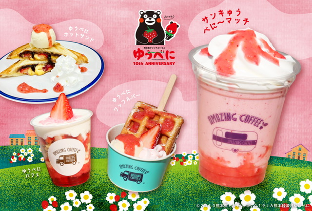 AMAZING COFFEEと、10周年を迎えた熊本県産「ゆうべに」が今年もコラボレーションいたします。今回で6年目の取り組みで、『サンキゅうべに~マッチ』が期間限定で登場。『サンキゅうべに~マッチ』の他にも特別なスイーツやドリンクが発売となります。